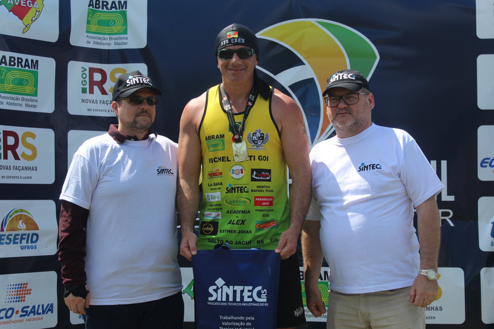 Atleta exibe logo do SINTEC-RS.