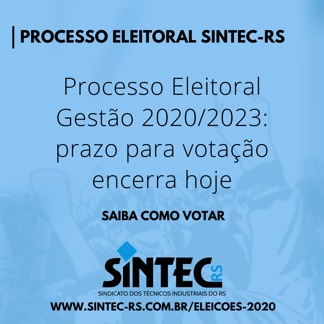 Processo Eleitoral SINTEC-RS Gestão 2020/2023: prazo para participar da votação encerra hoje