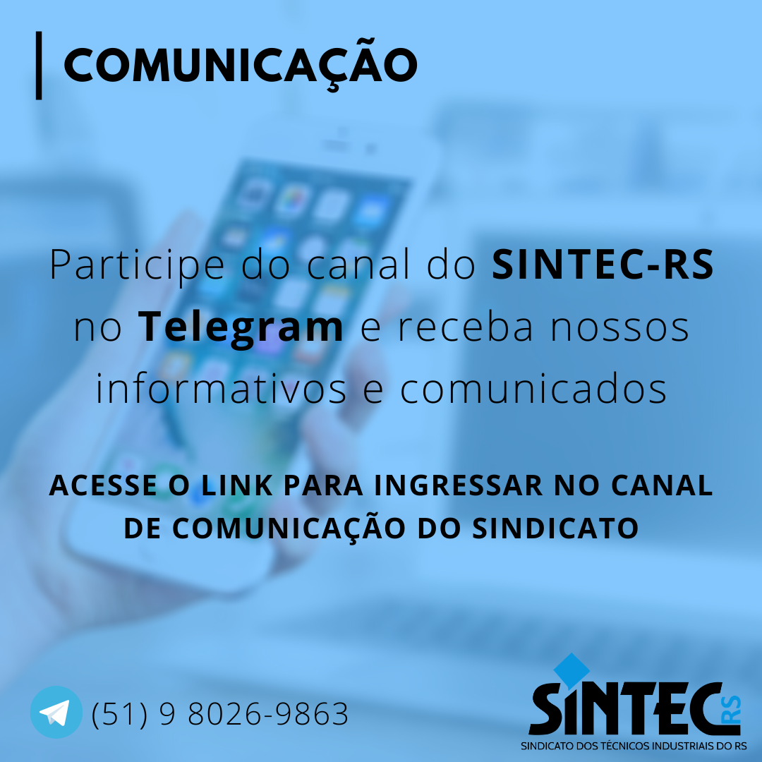 Participe do novo canal de comunicação do SINTEC-RS no Telegram e receba nossos informativos e comunicados!
