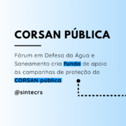 As entidades representativas dos funcionários da CORSAN formaram o FÓRUM DE DEFESA DA ÁGUA E DO SANEAMENTO para lutar pela CORSAN pública e pelo patrimônio da sociedade gaúcha.