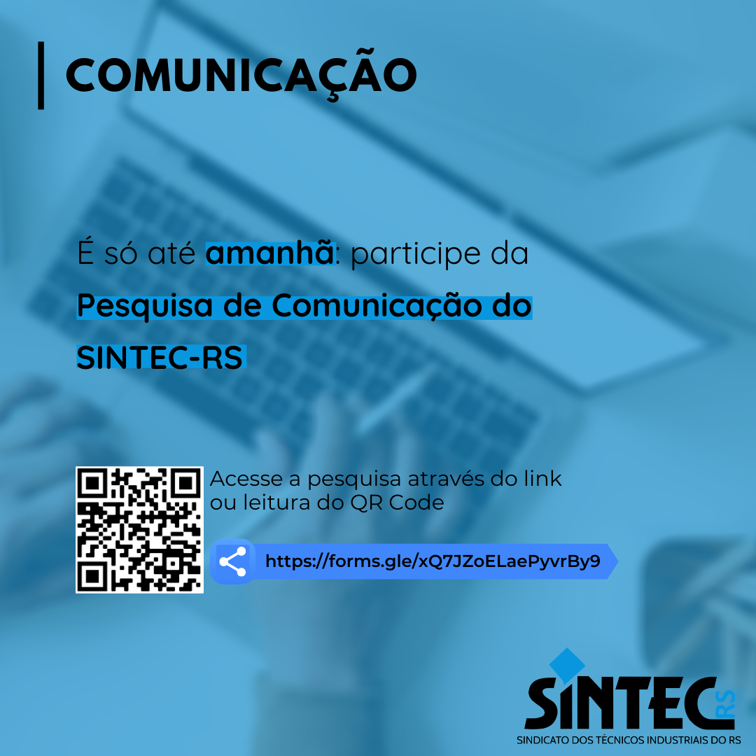 O prazo para participar da Pesquisa de Comunicação do SINTEC-RS encerra hoje! Participe e dê a sua opinião sobre a comunicação da entidade, nós queremos ouvir você! O SINTEC-RS está realizando a pesquisa para mapear as demandas e preferências da categoria para o setor de comunicação.