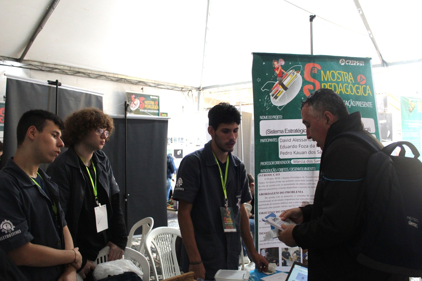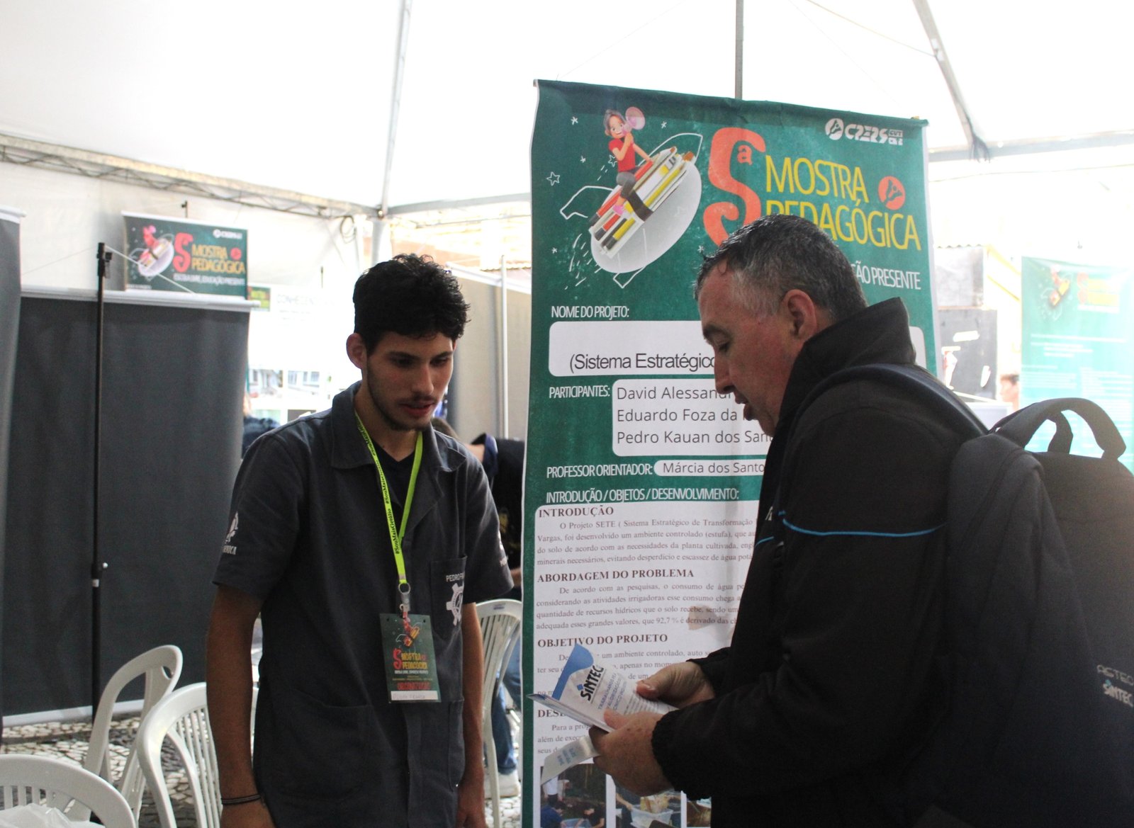 O diretor de organização política e formação sindical, Mário Schmidt, visitou a Mostra e conversou com os estudantes do ensino técnico para apresentar o sindicato.