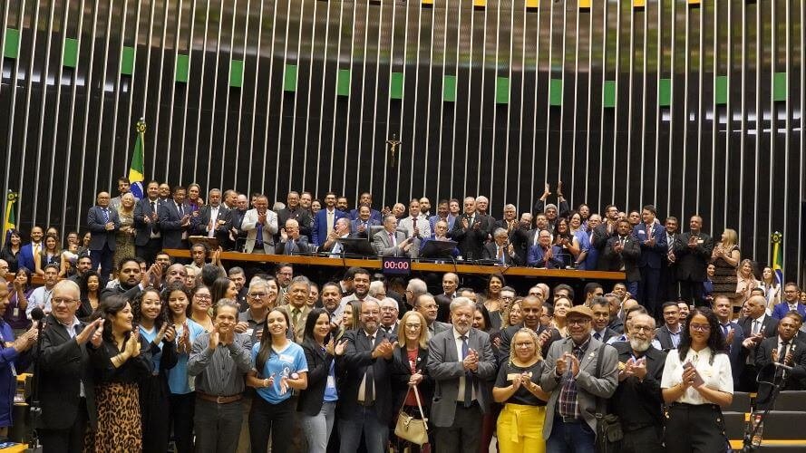Na última sexta-feira, 22, o SINTEC-RS participou da sessão solene em homenagem ao Conselho Federal dos Técnicos Industriais, realizada no plenário da Câmara dos Deputados, em Brasília. De proposição do deputado Giovani Cherini, o momento reuniu deputados, presidentes, diretores, conselheiros, funcionários e técnicos industriais registrados no Sistema CFT/CRTs, além de autoridades, representantes de conselhos federais das profissões regulamentadas, estudantes e imprensa.