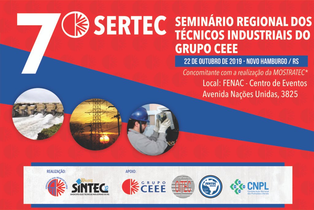 ATCEEE e SINTEC-RS convidam os (as) Técnicos (as) Industriais do Grupo CEEE a participarem do 7° SERTEC – SEMINÁRIO REGIONAL DOS TÉCNICOS INDUSTRIAIS DO GRUPO CEEE, que será realizado nos Pavilhões da FENAC concomitantemente com a realização da MOSTRATEC* no dia 22 de outubro de 2019.