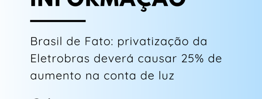 Brasil de Fato: privatização da Eletrobras deverá causar 25% de aumento na conta de luz