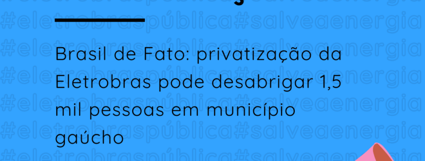 Brasil de Fato: privatização da Eletrobras pode desabrigar 1,5 mil pessoas em município gaúcho