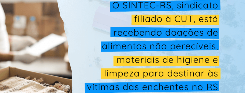 Faça sua doação na sede do SINTEC-RS, na Av. Borges de Medeiros, 328 – 11º andar, conjunto 112, no Centro Histórico de Porto Alegre.
