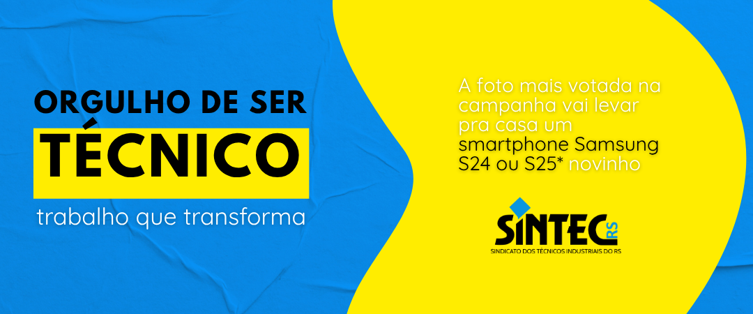 O SINTEC-RS convida os Técnicos e Técnicas Industriais registrados no CFT/CRT-RS e residentes no Rio Grande do Sul a participarem da campanha “Orgulho de ser Técnico: trabalho que transforma”, que tem como objetivo valorizar e dar visibilidade à atuação da categoria por meio de fotos reais do dia a dia profissional.