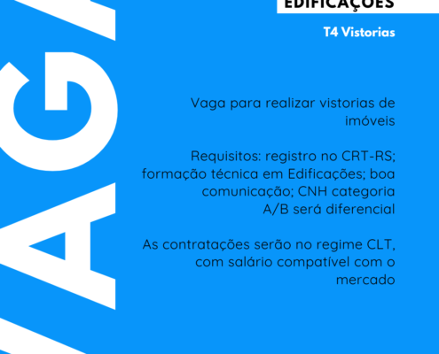 A empresa T4 Vistorias está contratando Técnicos em Edificações…