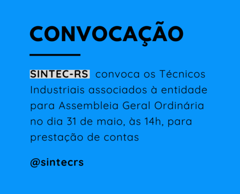 O SINTEC-RS convida a categoria dos Técnicos e Técnicas Industriais…