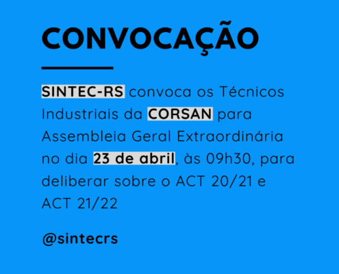 O SINTEC-RS convoca a categoria dos Técnicos e Técnicas…