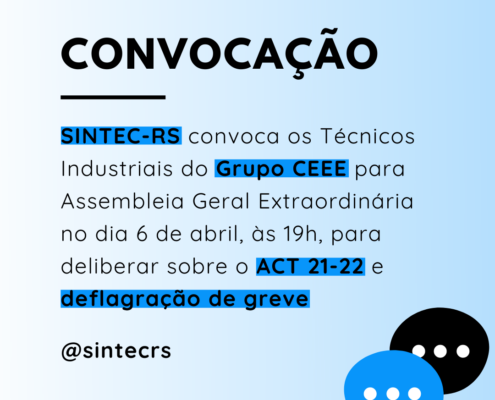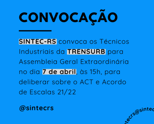 O SINTEC-RS informa a categoria dos Técnicos e Técnicas Industriais…