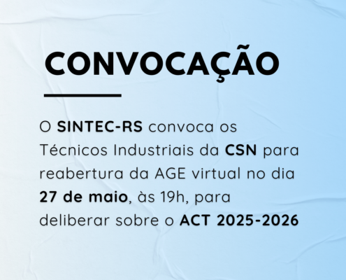 Nos dias 28, 29 e 30 de maio, o SINTEC-RS participa do Curso…