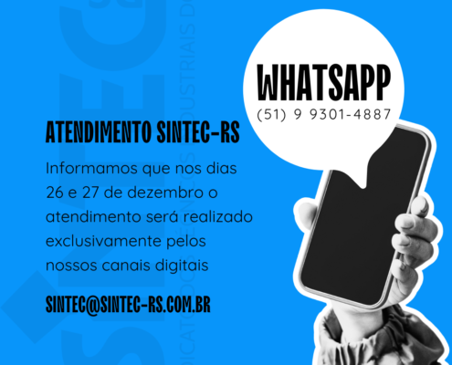 Nos dias 26 e 27 de dezembro, o atendimento do SINTEC-RS será…