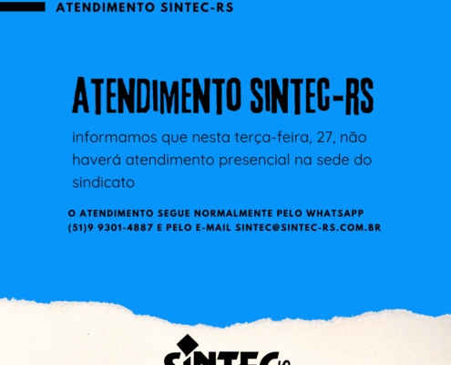 O SINTEC-RS informa que nesta terça-feira, 27, não haverá…