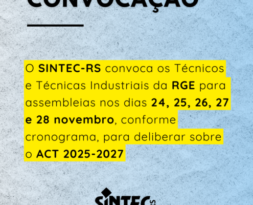 O SINTEC-RS informa que segue aguardando o envio da proposta…