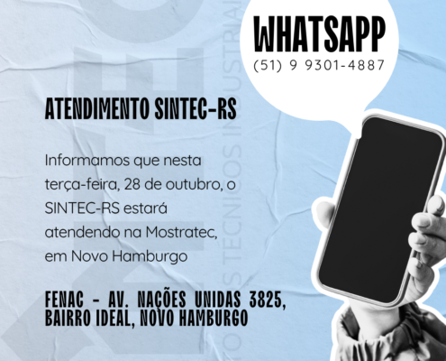 O SINTEC-RS informa que, nesta terça-feira, 28, estará atendendo…