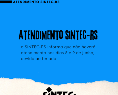 O SINTEC-RS informa que não haverá expediente nos dias 8 e…