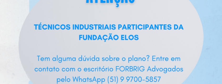 Diante da manifesta e recorrente procura dos técnicos e técnicas que buscam informações e esclarecimentos sobre a condição de seus planos de previdência complementar junto à Fundação ELOS, a assessoria jurídica do SINTEC-RS, o FORBRIG ADVOGADOS ASSOCIADOS, está ofertando um serviço de consultoria para sanar dúvidas sobre seu caso.