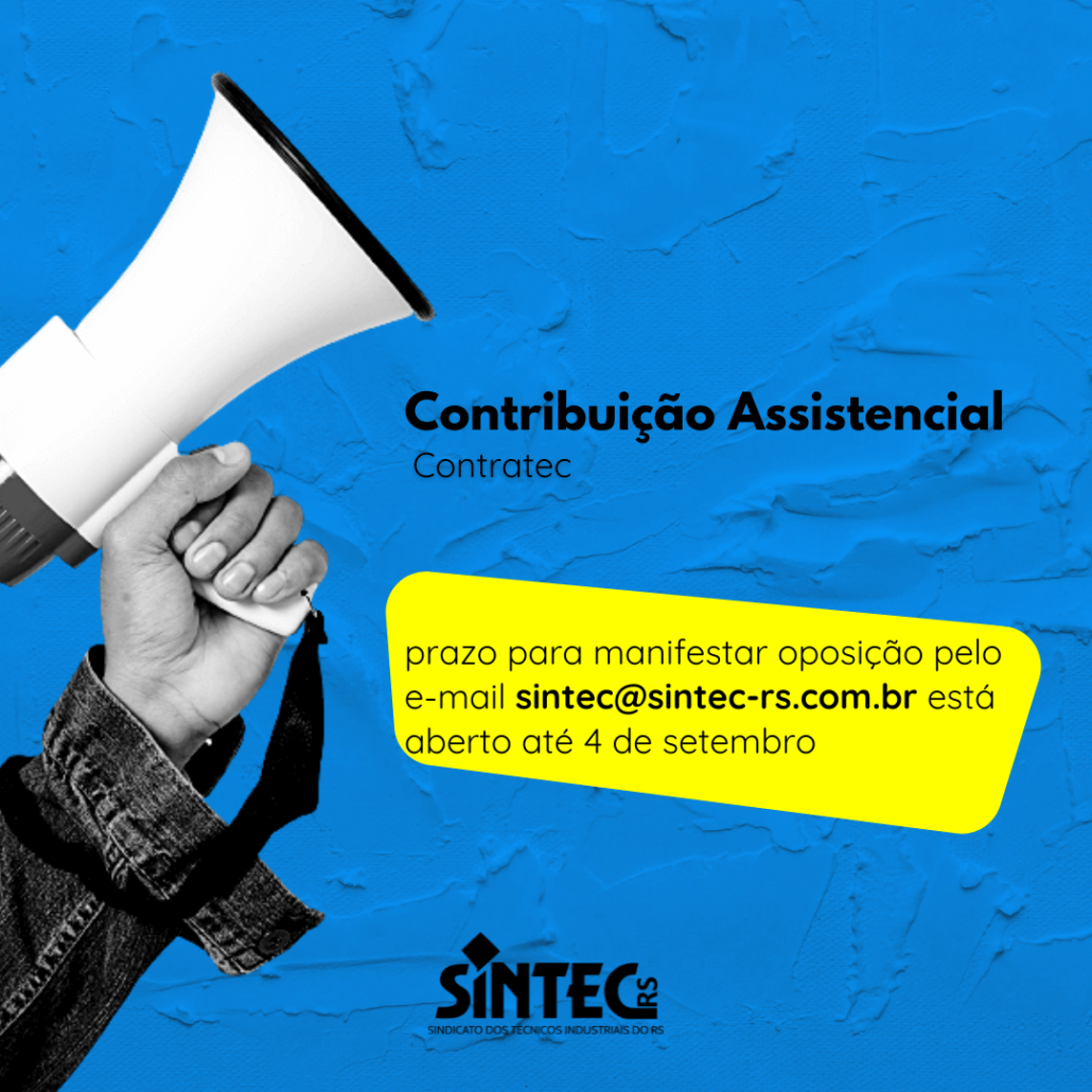 O desconto é de um dia de trabalho. O prazo para envio da oposição inicia nesta segunda-feira, 26, e encerra no dia 4 de setembro. A oposição deve ser enviada exclusivamente para o e-mail sintec@magenta-viper-548333.hostingersite.com, dentro do prazo informado.