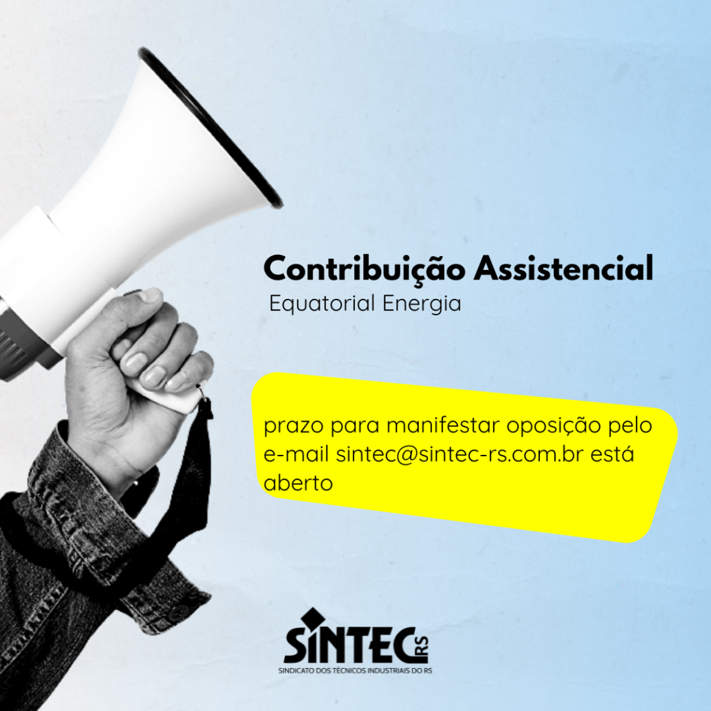 SINTEC-RS informa que o Acordo Coletivo de Trabalho 2024-2026 com a Equatorial Energia foi assinado e já está disponível para consulta no site do sindicato. Com isso, será operacionalizado o desconto da contribuição assistencial. O desconto é de um dia de trabalho para aqueles que não manifestarem oposição.
