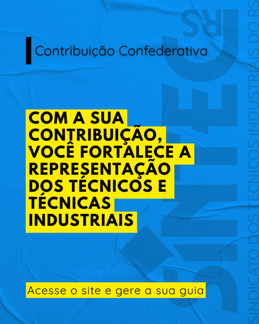 Ao contribuir, o trabalhador fortalece o SINTEC-RS e investe diretamente na valorização profissional dos Técnicos e Técnicas Industriais, garantindo uma representação mais sólida e preparada para defender os interesses da categoria.