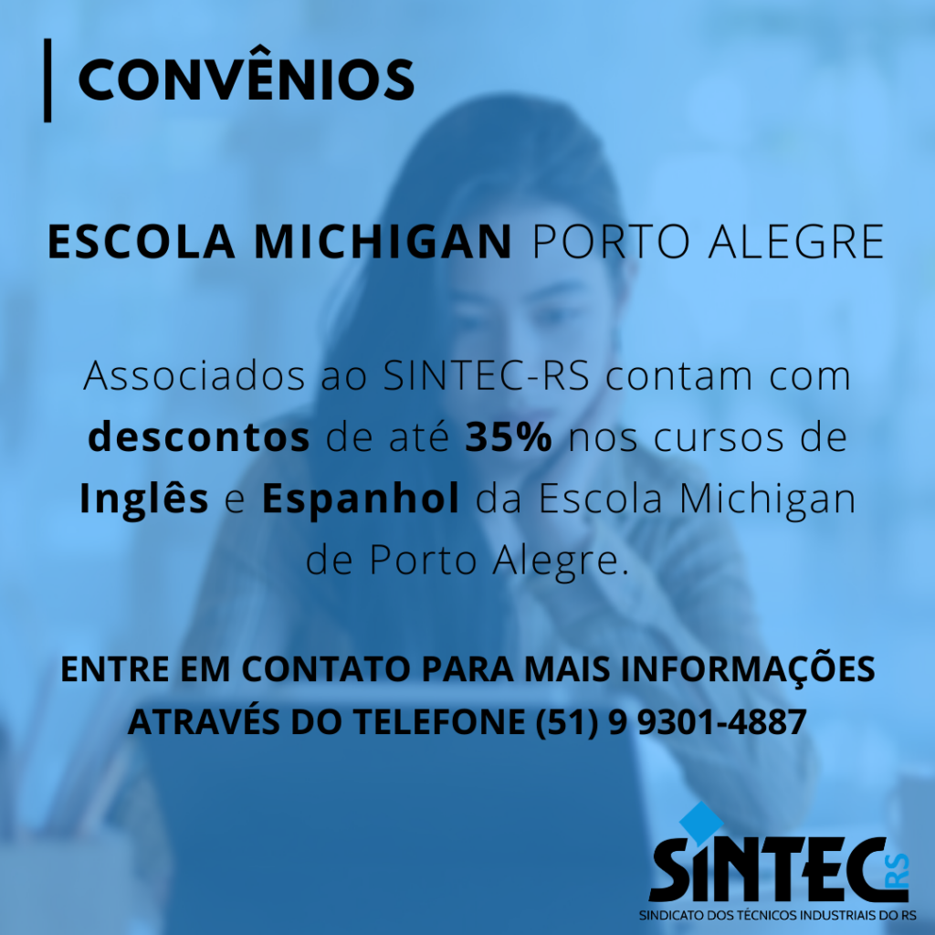 Associados ao SINTEC-RS contam com descontos de até 35% nos cursos de Inglês e Espanhol da Escola Michigam de Porto Alegre. A escola de idiomas conta com diversos formatos de cursos, desde as aulas online ao vivo, aulas presenciais e aulas gravadas para revisão de conteúdo, para todas as faixas etárias.