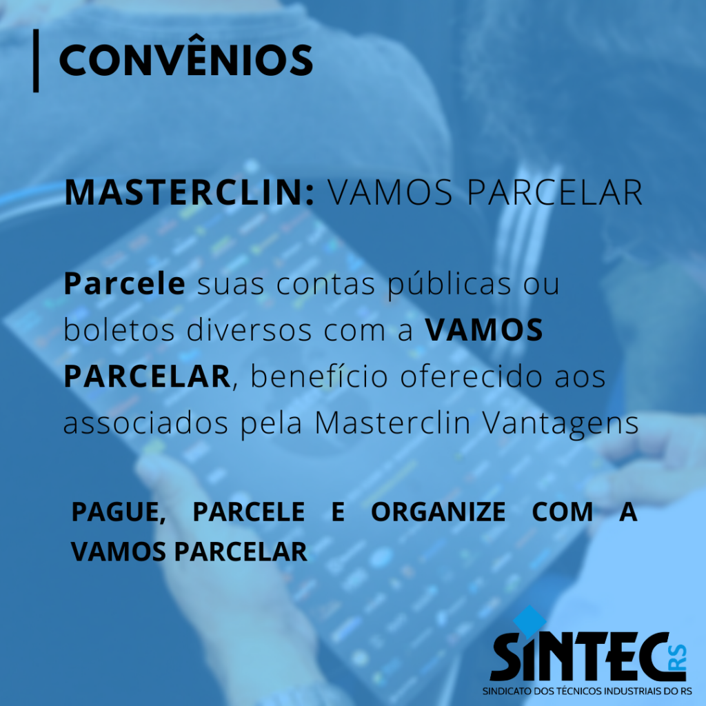 Associados ao SINTEC-RS contam com todas as vantagens do cartão MasterClin, oferece mais uma novidade! Parcele agora mesmo suas contas públicas ou boletos diversos com a VAMOS PARCELAR!