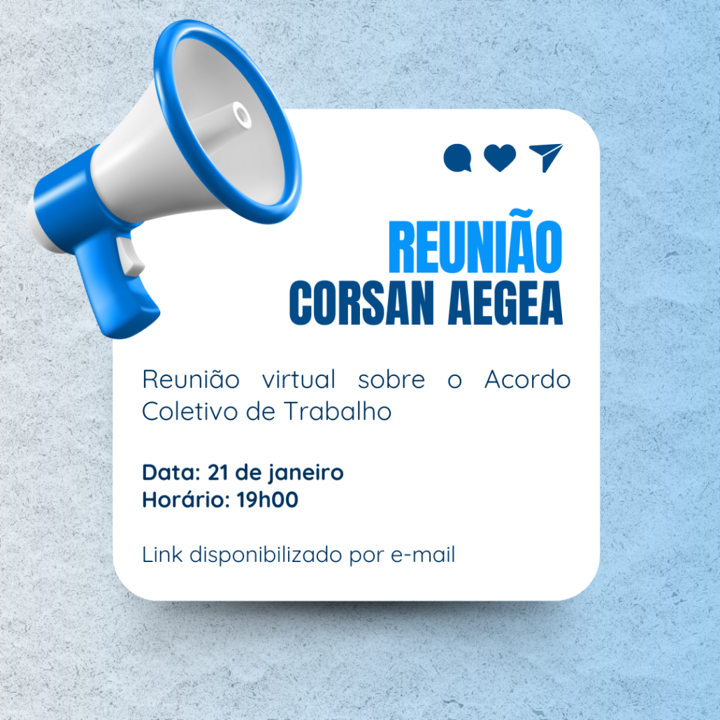 A reunião será via Google Meet, a partir das 19h. Sua participação é essencial para fortalecer a representação da categoria e construir uma pauta que atenda às nossas reivindicações.