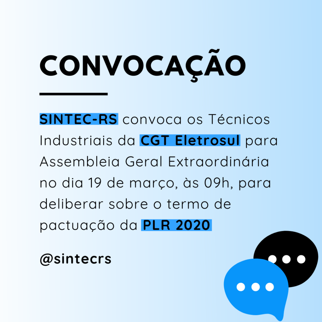 Convocação Assembleia Geral Extraordinária PLR 2020 CGT Eletrosul