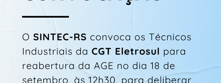 Convocação para reabertura da assembleia geral extraordinária CGT Eletrosul