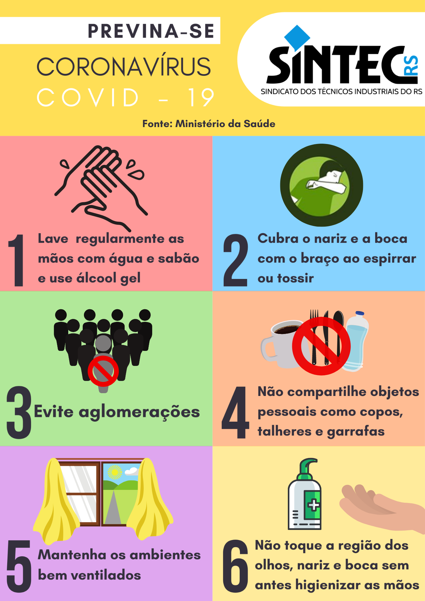 O SINTEC-RS está atento aos acontecimentos relacionados a pandemia do novo coronavírus e tem adotado medidas de contenção e prevenção contra a propagação do vírus.