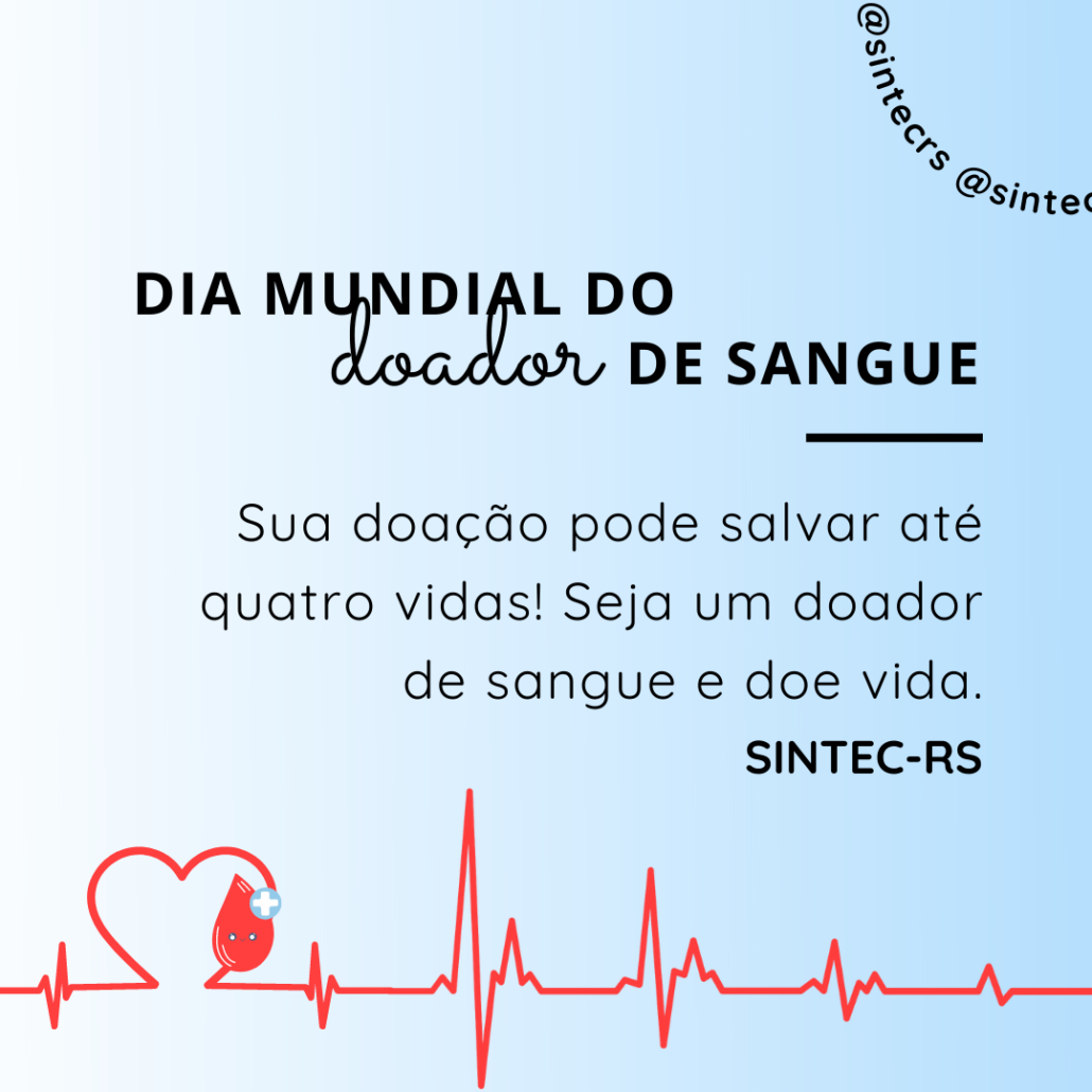 Ao longo do mês de junho o SINTEC-RS irá incentivar a doação de sangue em apoio à campanha Junho Vermelho. Doe sangue, registre o momento e marque o SINTEC-RS nas redes sociais para, juntos, formamos uma grande rede de solidariedade e incentivo às doações. Além disso, desafie mais duas pessoas a fazerem o mesmo.