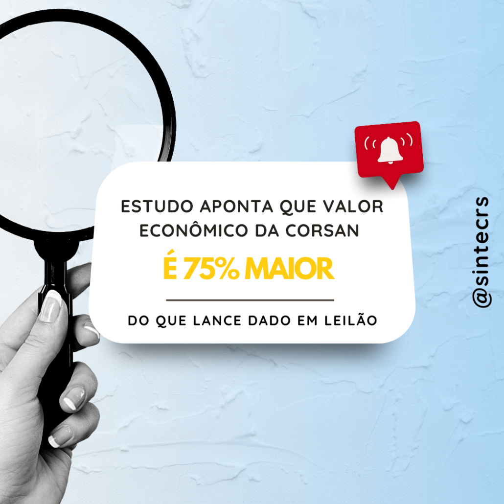 A avaliação econômico-financeira, que foi concluída no final de janeiro, foi solicitada pelo SINTEC-RS a fim de apurar o valor da Companhia Riograndense de Saneamento, sobretudo considerando que diversos elementos corroboram que o valor indicado pelo Estado está muito aquém do efetivo valor.