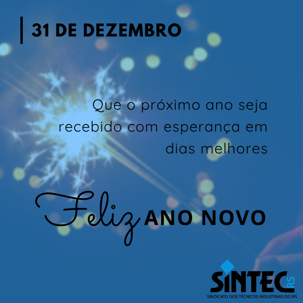 O SINTEC-RS deseja a todos um Feliz Ano Novo e que 2021 seja recebido com esperança em dias melhores!