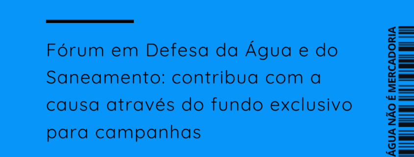 Fórum em Defesa da Água e do Saneamento: é possível contribuir com a causa através do fundo exclusivo para campanhas