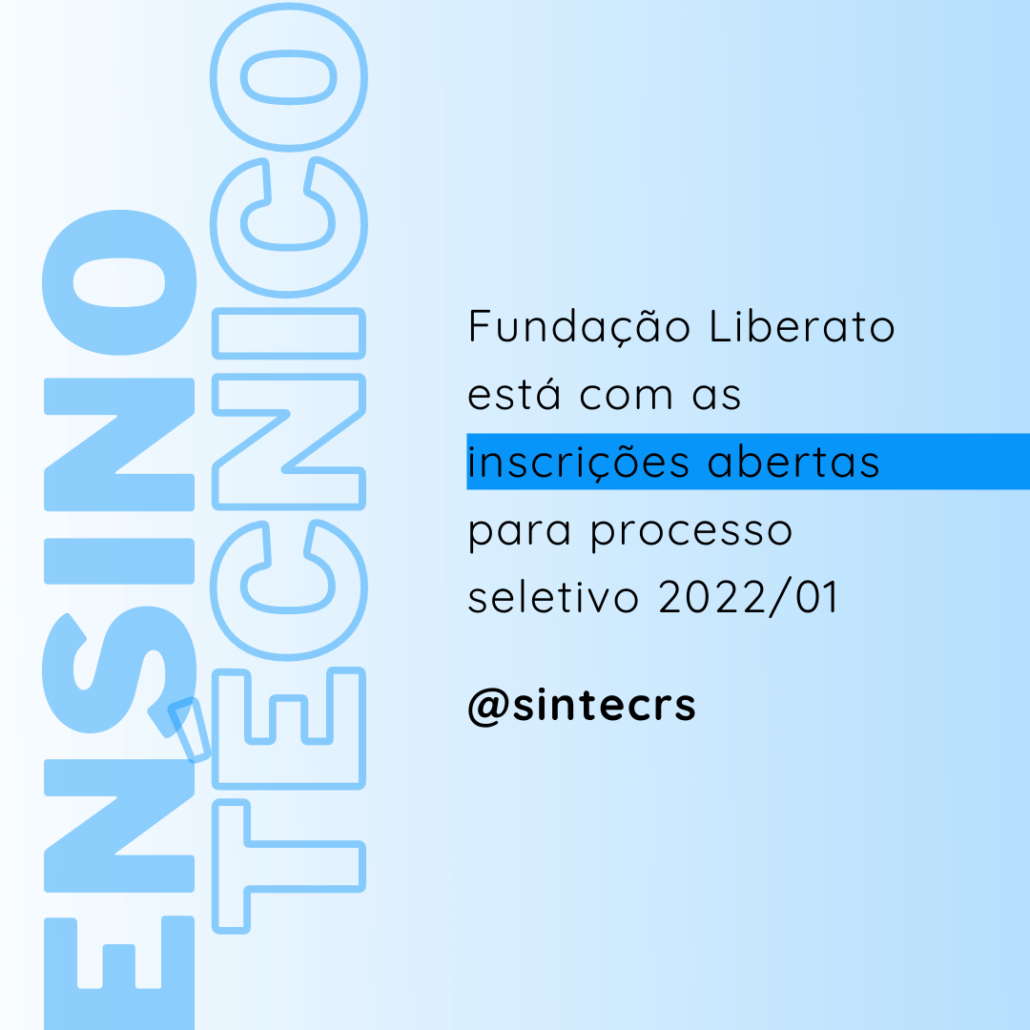 A Fundação Escola Técnica Liberato Salzano Vieira da Cunha, em Novo Hamburgo, está com as inscrições abertas para o processo seletivo com ingresso no primeiro semestre de 2022. O prazo para se inscrever encerra no dia 21 de novembro e as provas serão realizadas no dia 5 de dezembro. O valor da taxa de inscrição é de R$ 50,00.