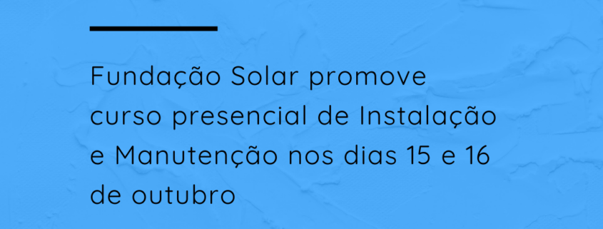 O curso de Instalação e Manutenção de Sistemas Solares Fotovoltaicos Conectados à Rede, promovido pela Fundação Solar em parceria com a Escola Técnica Liberato está com as inscrições abertas para a edição no formato presencial! As aulas ocorrerão nos dias 15 e 16 de outubro na Fundação Liberato, das 19h às 22h na sexta-feira (15) e das 08h às 17h no sábado (16).