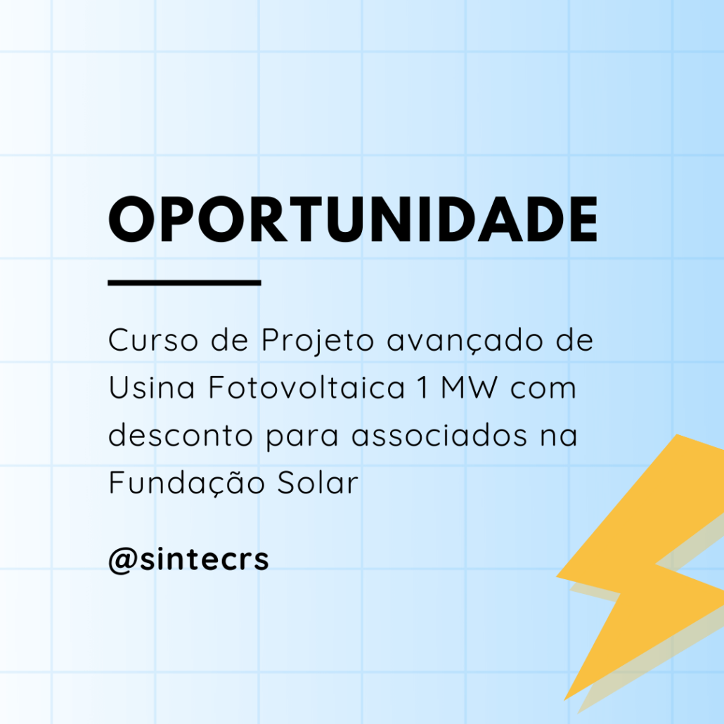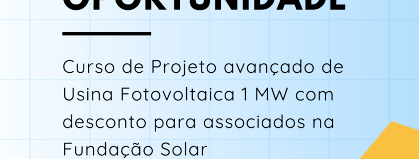Fundação Solar promove curso de Projeto avançado de Usina Fotovoltaica 1 MW com desconto para associados