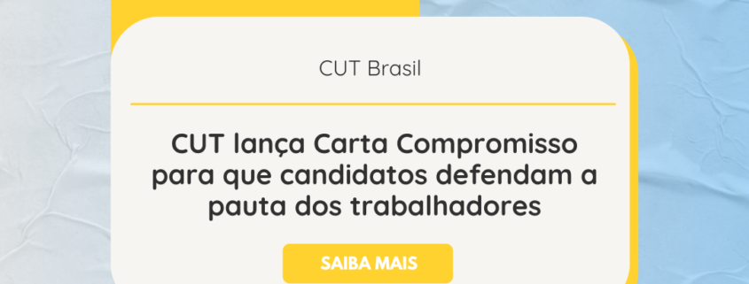 Com o objetivo de defender os interesses da classe trabalhadora, a CUT lançou uma Carta Compromisso para que candidatos às câmaras municipais e às prefeituras nas próximas eleições, assumam compromissos em apoiar pautas da classe trabalhadora.