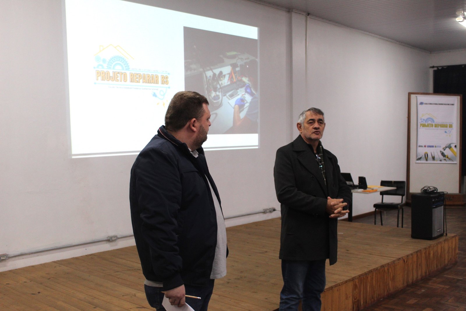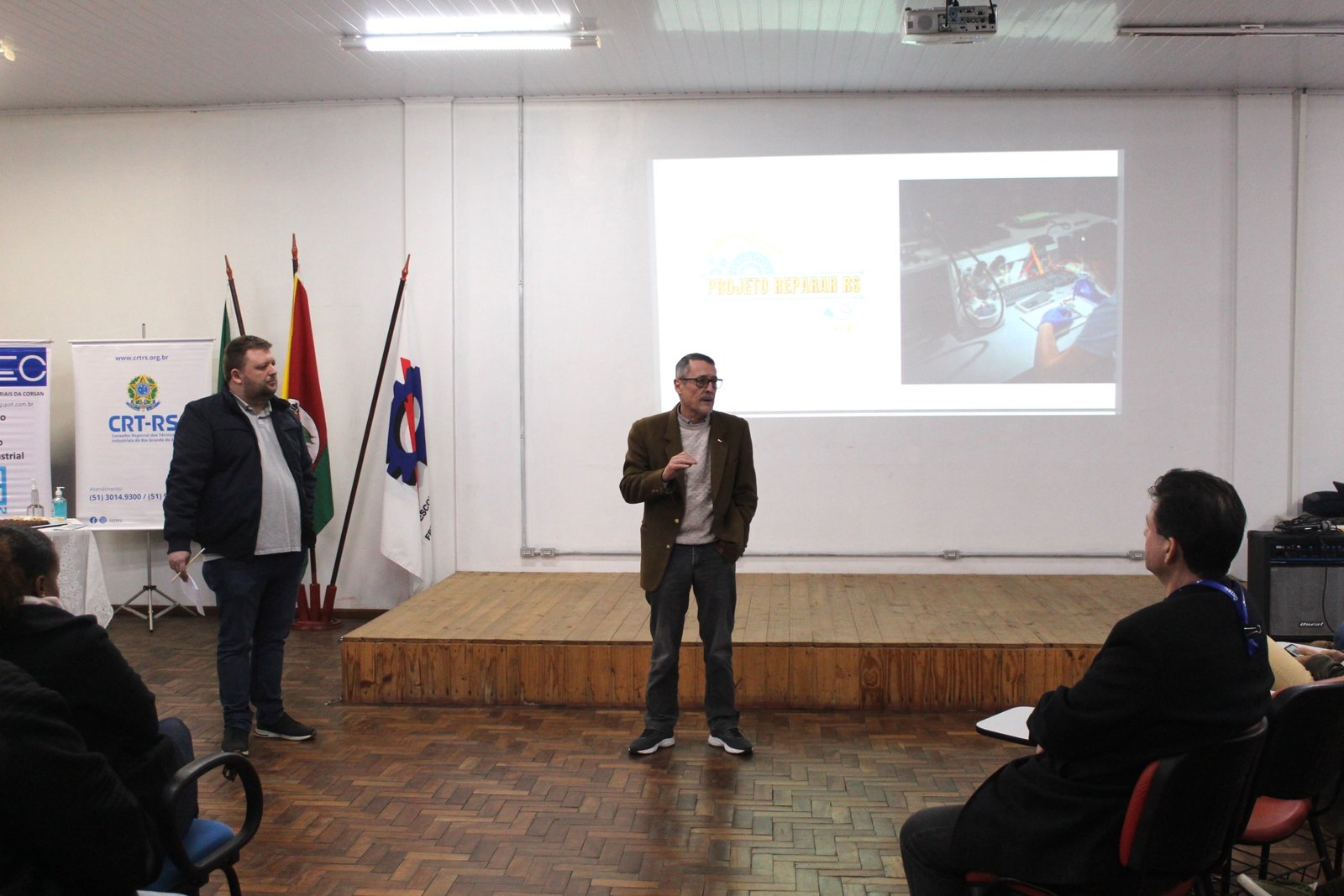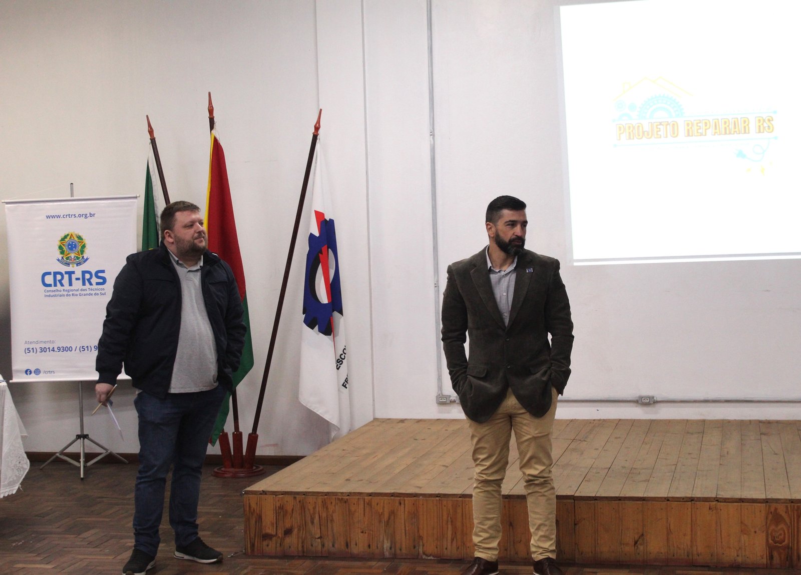 Nesta sexta-feira, 5, aconteceu o lançamento oficial do Projeto Reparar RS, promovido pelo SINTEC-RS, CRT-RS, ASTEC, ATCEEE e pela Escola Técnica Frederico Guilherme Schmidt, em São Leopoldo. O momento reuniu representantes das entidades, do corpo docente da escola e de lideranças políticas da região, além de alguns voluntários já inscritos no programa.