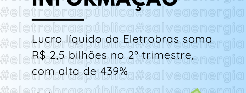 Veja, a seguir, o material da campanha Salve a Energia sobre lucratividade da Eletrobras no segundo trimestre do ano: