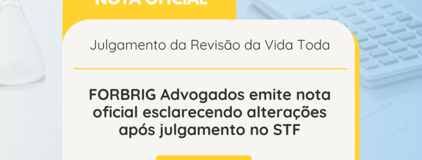 NOTA OFICIAL FORBRIG ADVOGADOS: JULGAMENTO DA REVISÃO DA VIDA TODA