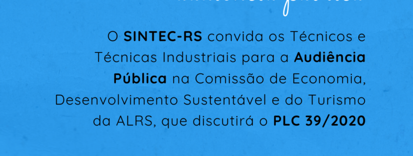 No dia 27 de junho a Comissão de Economia, Desenvolvimento Sustentável e do Turismo da Assembleia legislativa do RS realizará a Audiência Pública que discutirá o PLC 39/2020 – que propõe a adequação da Lei Complementar nº 14.376.