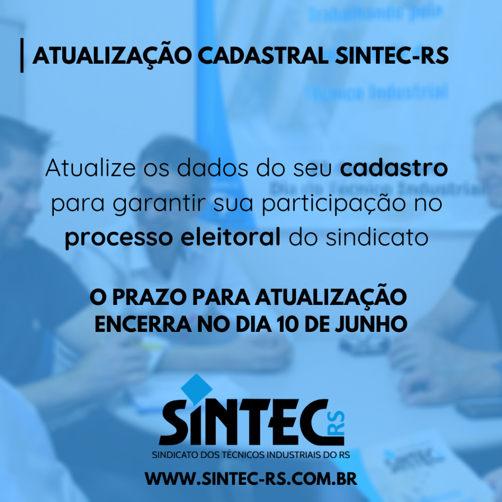 Atualize os dados do seu cadastro até o dia 10 de junho para garantir sua participação no processo eleitoral do SINTEC-RS!