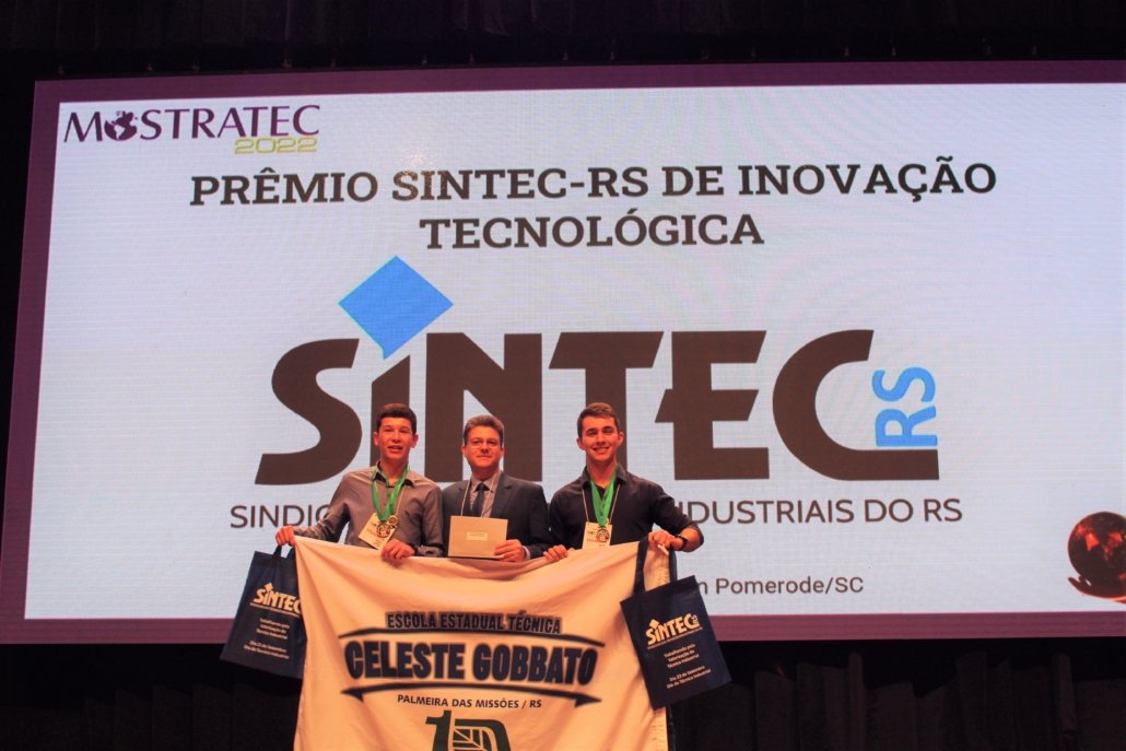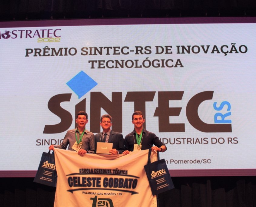 Arthur e Jean estudam na Escola Estadual Técnica Celeste Gobbato, em Palmeira das Missões, e foram orientados pela professora Carine Meier. Além do Prêmio SINTEC-RS, o trabalho desenvolvido pelos estudantes também foi reconhecido com o primeiro lugar na área de Ciência Ambientais da Mostratec e com o Prêmio ABRIC de Incentivo à Pesquisa. O prêmio entregue pelo sindicato credencia os vencedores para a FEBIC, em Pomerode, Santa Catarina.