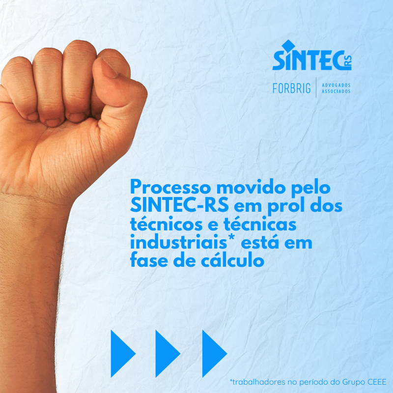 Em 23/02/2024, após retorno da nossa perita, apresentamos requerimento de complementação de documentos por parte da empresa a fim de permitir a apresentação da conta. Nesse sentido, ainda não há lista final de técnicos contemplados, tampouco cálculo individualizado. A ação foi movida pelo sindicato em prol dos técnicos e técnicas industriais do Grupo CEEE.