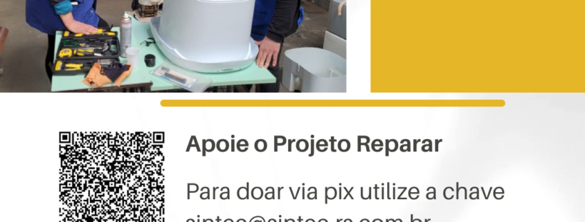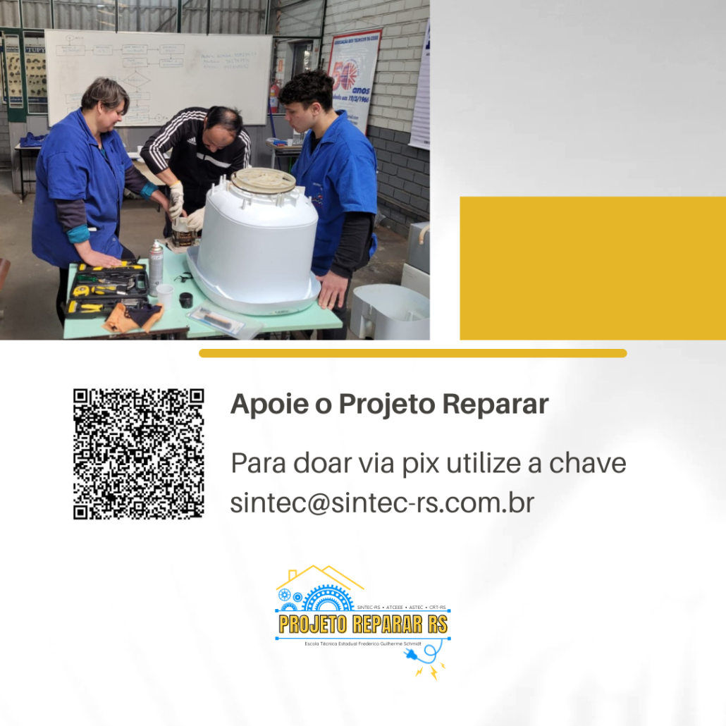 Resultado da parceria entre SINTEC-RS, CRT-RS, ATCEEE, ASTEC e a Escola Técnica Estadual Frederico Guilherme Schmidt, o projeto Reparar surge com o intuito de recuperar itens essenciais que foram impactados pelas enchentes.