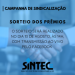 A diretoria do SINTEC-RS comunica que o sorteio dos prêmios da Campanha de Sindicalização foi realizado através da plataforma Sorteios.org , com transmissão ao vivo pelo Facebook.