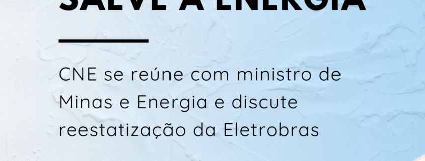 Salve a energia: CNE se reúne com ministro de Minas e Energia e discute reestatização da Eletrobras